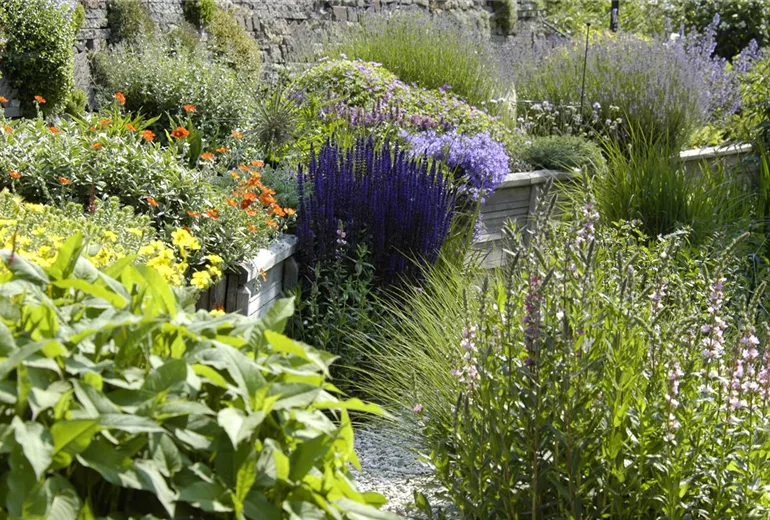 Bei der großen Sortenvielfalt an Sommerstauden lässt sich ein Beet mit vielen bunten Stauden kinderleicht gestalten. Wer keine Idee hat, welche Stauden ideal für Sonne oder Schatten sind, findet die Informationen auf den Etiketten der Pflanzen.