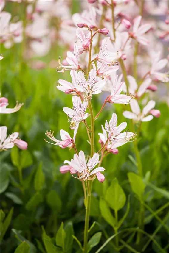 Dictamnus albus Mit einem Diptam im Garten wird es definitiv nie langweilig. Die Pflanze bildet im Sommer wunderschöne hellrosa Blüten aus, die auf kräftigen Stielen doldenartig wachsen. Eine Besonderheit der Blüten: sie sind zygomorph. Das bedeutet, dass die Blüte aus zwei exakt gleichen und symmetrischen Teilen besteht. Und als ob das noch nicht besonders genug wäre, versprühen die Blüten des Diptam einen angenehmen Geruch nach Vanille und Zitrone. Diese Pflanze ist wirklich einzigartig!