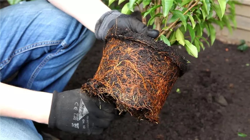 Portugiesischer Kirschlorbeer - Einpflanzen im Garten (3) Falls sich in dem Topf bereits Unkräuter angesiedelt haben, sollten Sie diese selbstverständlich entfernen. Vor dem Einpflanzen können Sie den Wurzelballen etwas auflockern und noch einmal durchdringend wässern.
