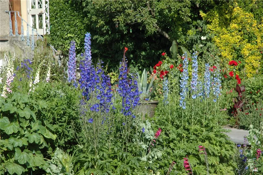Delphinium x elatum Die beste Pflanzzeit für Stauden ist der Herbst. Wenn die Tage wieder kürzer werden verfliegt langsam die Sommerhitze und der Regen setzt wieder ein. Das sind optimale Bedingungen für junge Stauden, die einmal groß und stark werden wollen. Im Frühjahr können auch Stauden gepflanzt werden, aber dann ist durch den weniger vorhandenen Regen eine höhere Bewässerung wichtig. Vor allem im Sommer müssen Stauden ausreichend gewässert werden. Um Stauden zu pflanzen wird zunächst der Boden vorbereitet. Der richtige Standort für das Staudenbeet richtet sich nach den Anforderungen der einzelnen Stauden. Nachdem der Boden von Unkraut befreit wurde, kann er mit frischem Kompost oder Mutterboden aufgebessert werden. Vor dem Einpflanzen werden die Stauden gründlich gewässert. Dadurch bekommen sie einen guten Start und lassen sich leichter aus dem Plastiktopf lösen. Gepflanzt wird dann je nach Anspruch der unterschiedlichen Stauden mit einem Abstand von 15 bis 80 Zentimetern. Der Abstand ist wichtig, damit sich die Pflanzen nicht gegenseitig im Wachstum behindern und miteinander konkurrieren.